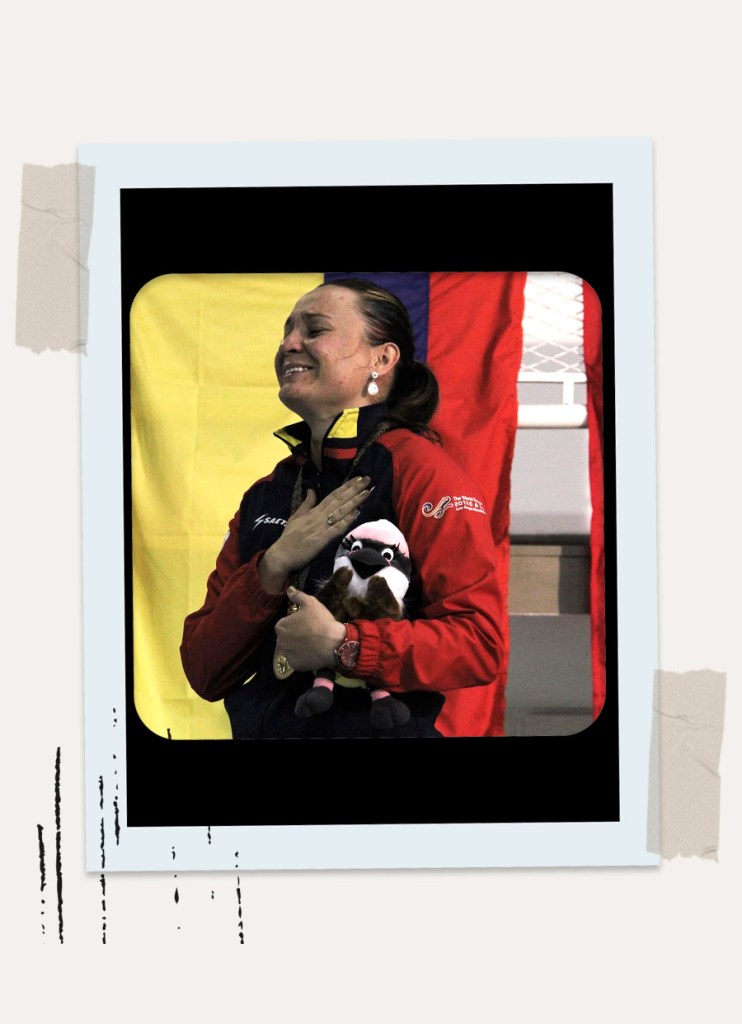 - …Y cuando me pusieron la tan anhelada medalla de oro como campeona mundial y sonó el himno de Colombia, con la mano en el pecho comenzamos a saborear sus letras juntas ¡Oh gloria inmarcesible, Oh júbilo inmortal! Y el aire se llenó de nuevo de ese peso de gloria del que están hechas las grandes victorias.